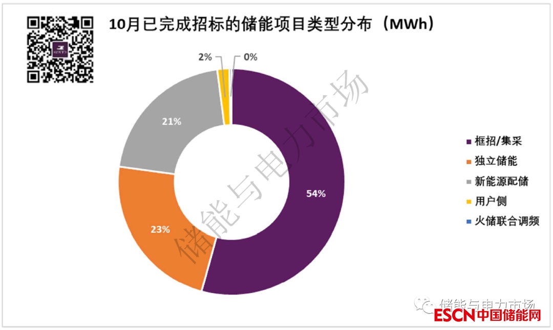 10月共完成了16個(gè)EPC/PC總承包招標(biāo)和19個(gè)儲(chǔ)能系統(tǒng)采購,此外還有2個(gè)光伏+儲(chǔ)能EPC總承包工程、1個(gè)電池單體采購、2個(gè)儲(chǔ)能電池預(yù)制艙采購。