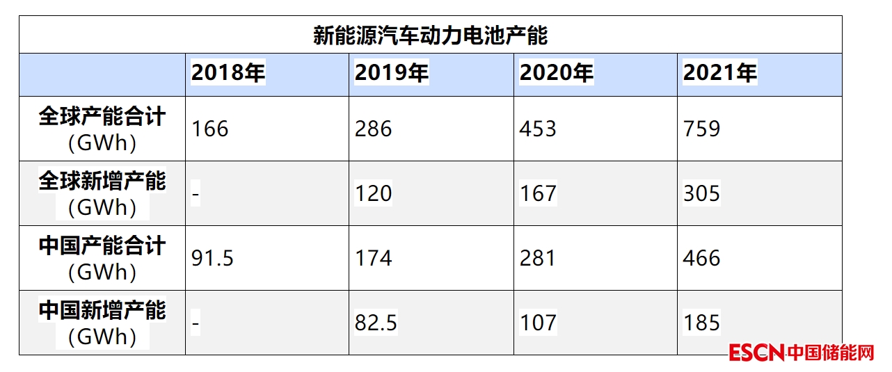 近幾年,在世界新能源汽車高增長(zhǎng)拉動(dòng)下,全球新能源汽車動(dòng)力電池企業(yè)的產(chǎn)銷規(guī)模持續(xù)高增長(zhǎng),拉動(dòng)產(chǎn)能擴(kuò)張相對(duì)較快。2018年全球新能源汽車動(dòng)力電池主力企業(yè)產(chǎn)能達(dá)到166G瓦時(shí),2021年達(dá)到759G瓦時(shí),以年均70%的增速高增長(zhǎng)。