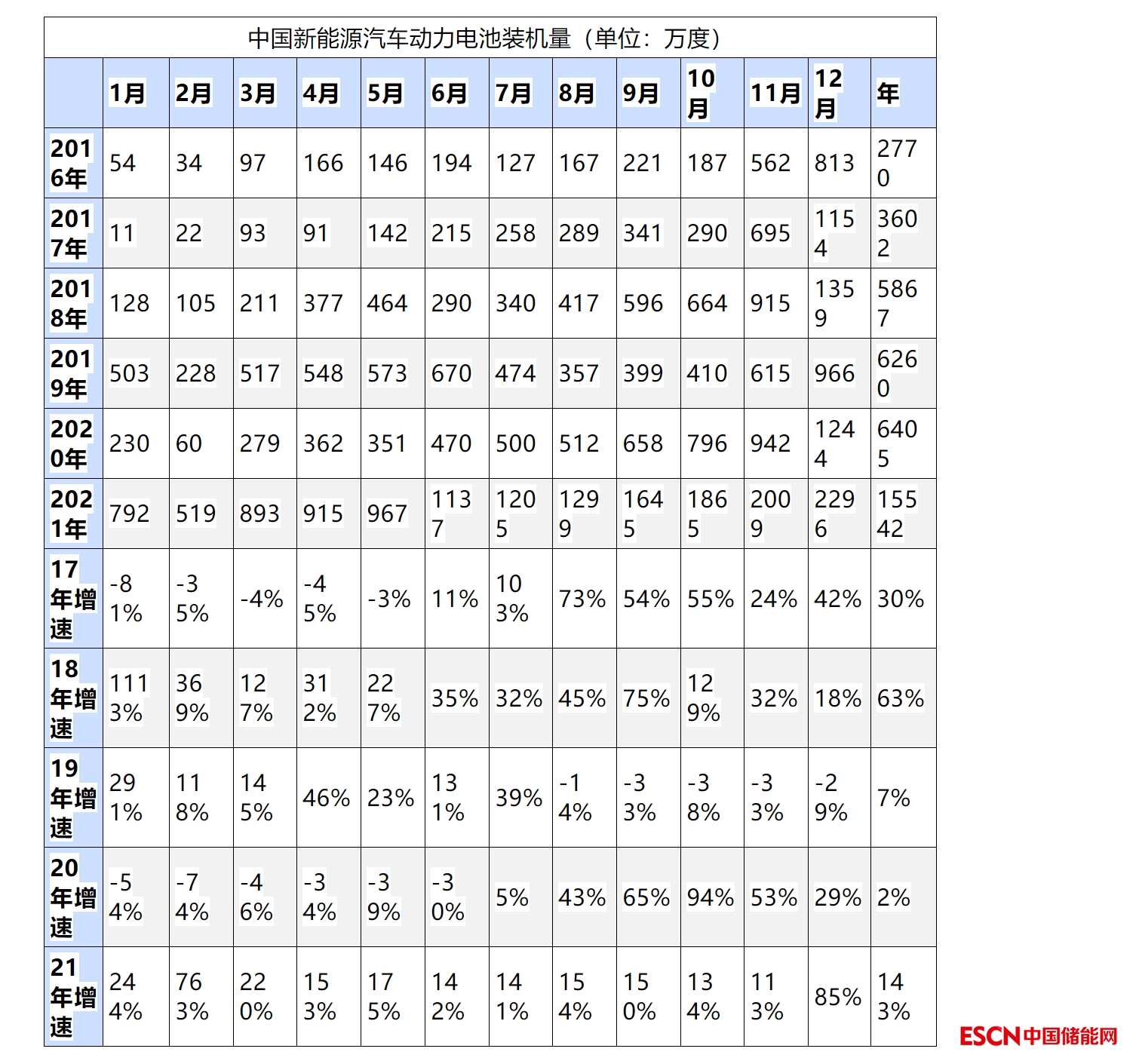 2021年中國(guó)國(guó)產(chǎn)動(dòng)力電池裝機(jī)量15542度電,同比增長(zhǎng)143%,達(dá)到近幾年的電池裝機(jī)量增速的最高增速水平。遠(yuǎn)超過歷史正常增速。