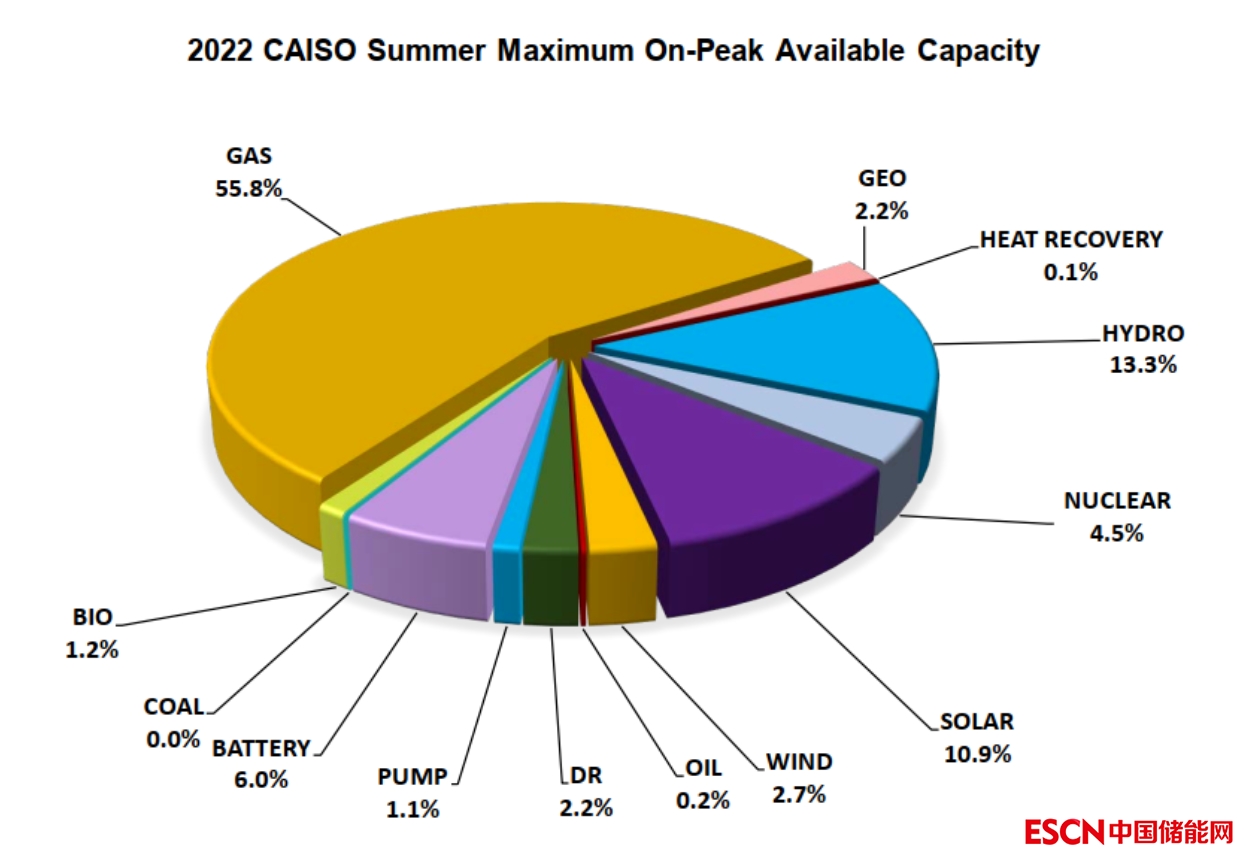 圖3 2022年夏季CAISO最大負(fù)荷期間可用容量占比