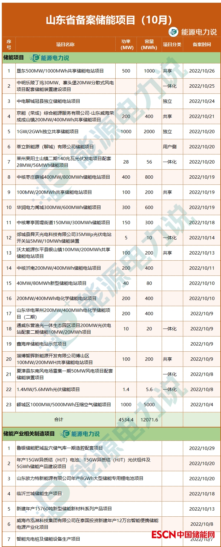 10月,山東省備案儲能項目30個,其中儲能項目23個,儲能產(chǎn)品制造基地項目7個。