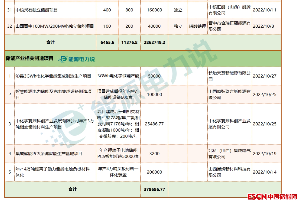 10月,山西省備案儲能項目37個,其中儲能項目32個,儲能產(chǎn)品制造基地項目5個。