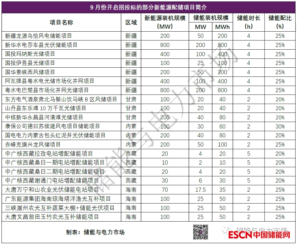 以9月份開始招投標的部分新能源配儲項目為例,就有新疆、甘肅、西藏、內(nèi)蒙、海南等地新能源配置儲能比例超過了20%。并且在這些項目中,儲能時長除2小時外,4小時、5小時的長時儲能也屢見不鮮。例如西藏的存量光伏項目,按照25%,持續(xù)放電時長5小時配置儲能,儲能相當于可以存儲光伏按額定功率發(fā)電時,1小時的發(fā)電量(參考文章:25%/4小時,西藏光伏項目開始高比例配置儲能)。