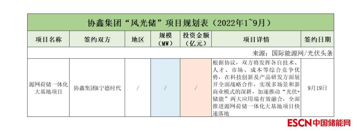 截至2022年9月30日,協(xié)鑫集團(tuán)共簽約(規(guī)劃)1個(gè)風(fēng)光儲項(xiàng)目,該項(xiàng)目僅簽署了合作協(xié)議。