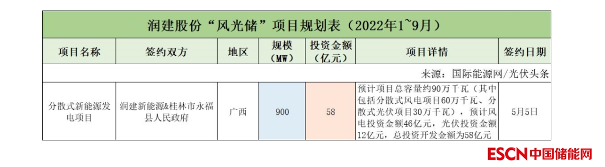 截至2022年9月30日,潤建股份共簽約(規(guī)劃)1個(gè)風(fēng)光儲項(xiàng)目,項(xiàng)目規(guī)模為900MW,投資金額為58億元。