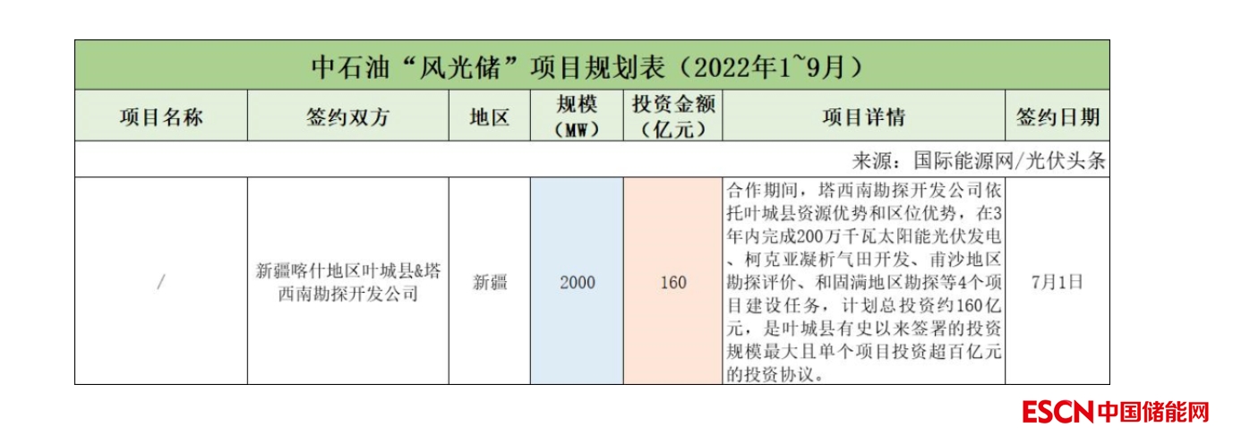 截至2022年9月30日,中石油共簽約(規(guī)劃)1個(gè)風(fēng)光儲項(xiàng)目,明確規(guī)模共計(jì)2GW,明確投資金額160億元。