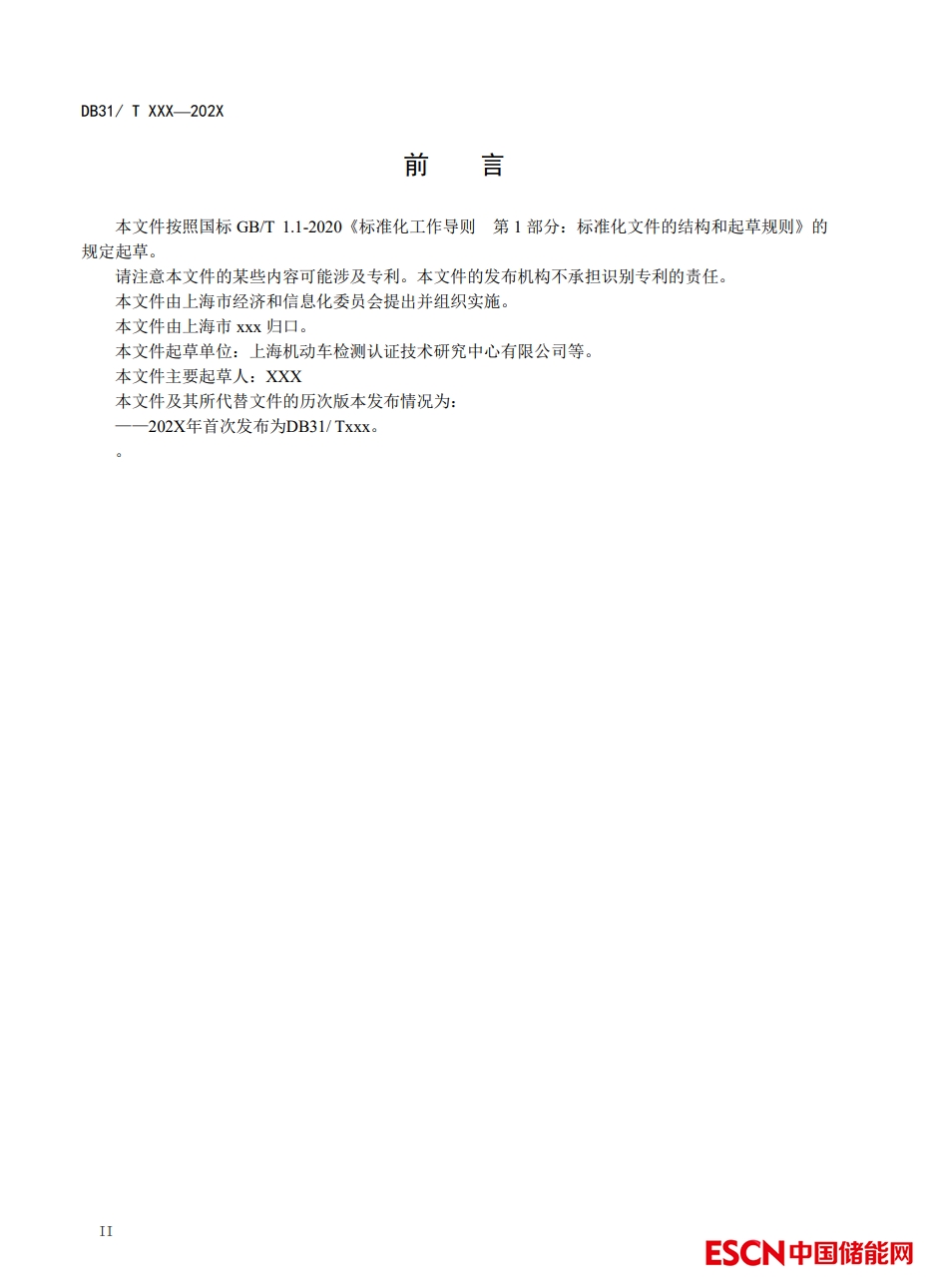 2020 年 11 月 20 日 上海市市場(chǎng)監(jiān)督管理局發(fā)布《關(guān)于下達(dá) 2020 年度第七批上海市地方標(biāo)準(zhǔn)制修訂項(xiàng)目計(jì)劃的通知》(滬市監(jiān)標(biāo)技[2020]560 號(hào))同意標(biāo)準(zhǔn)立項(xiàng),隨即成立了以上海機(jī)動(dòng)車檢測(cè)認(rèn)證技術(shù)研究中心有限公司、上海煦達(dá)新能源科技有限公司、上海智能新能源汽車科創(chuàng)功能平臺(tái)有限公司、深圳市比亞迪鋰電池有限公司、上汽大眾汽車有限公司、泛亞汽車技術(shù)中心有限公司、上海捷新動(dòng)力電池系統(tǒng)有限公司、威睿電動(dòng)汽車技術(shù)(寧波)有限公司、上海時(shí)代新能源科技有限公司、合肥國(guó)軒高科動(dòng)力能源有限公司、特斯拉(上海)有限公司、瑞浦能源有限公司、上海交通大學(xué)、同濟(jì)大學(xué)為主要起草單位的標(biāo)準(zhǔn)制定工作組(以下簡(jiǎn)稱“工作組”)。