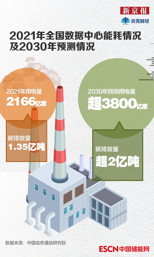隨著數(shù)字化經(jīng)濟(jì)加速發(fā)展,算力成為社會重要生產(chǎn)力之一,而數(shù)據(jù)中心成為數(shù)字化轉(zhuǎn)型發(fā)展的基礎(chǔ)設(shè)施。隨著數(shù)據(jù)中心市場擴(kuò)大,行業(yè)能耗也逐步走高。數(shù)據(jù)顯示,2021年全國數(shù)據(jù)中心總耗電量達(dá)2166億度,碳排放量達(dá)1.35億噸,占全國二氧化碳排放量的1.14%左右。
