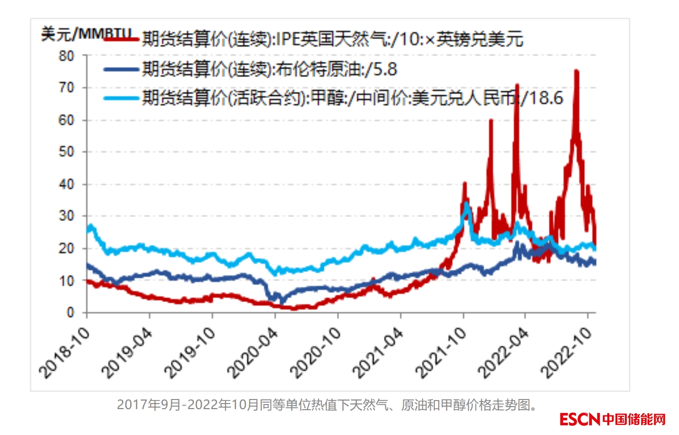 下圖是過(guò)去6年間,按單位熱值計(jì)算的天然氣、甲醇、石油價(jià)格比對(duì),可見(jiàn)石油優(yōu)勢(shì)明顯。雖然近年甲醇與石油價(jià)差收斂,但主流工業(yè)化傳統(tǒng)甲醇制備方法的碳排放量高,綠色低碳甲醇制備成本直線上升,價(jià)格堪憂。