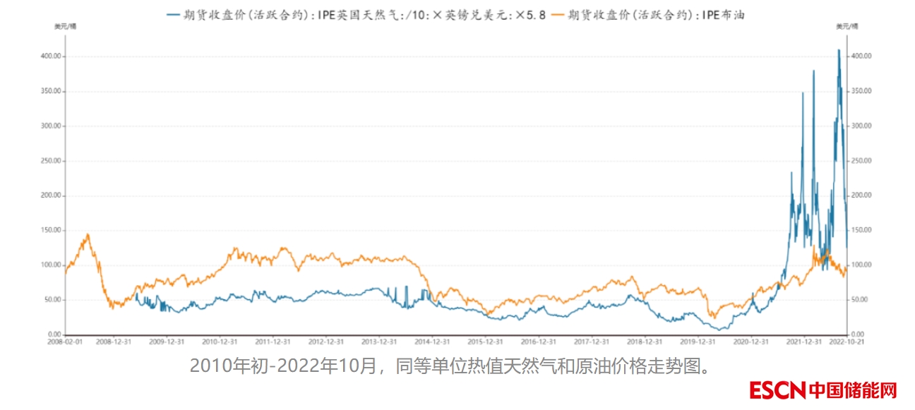 俄烏沖突爆發(fā)以來(lái),化石能源主戰(zhàn)場(chǎng)天然氣價(jià)格順勢(shì)不斷走高。按熱值轉(zhuǎn)換,天然氣10月21日價(jià)格相當(dāng)于煤炭的1.99倍、石油的2.05倍。天然氣仍是最貴的一次能源,石油則是最經(jīng)濟(jì)的一次能源。