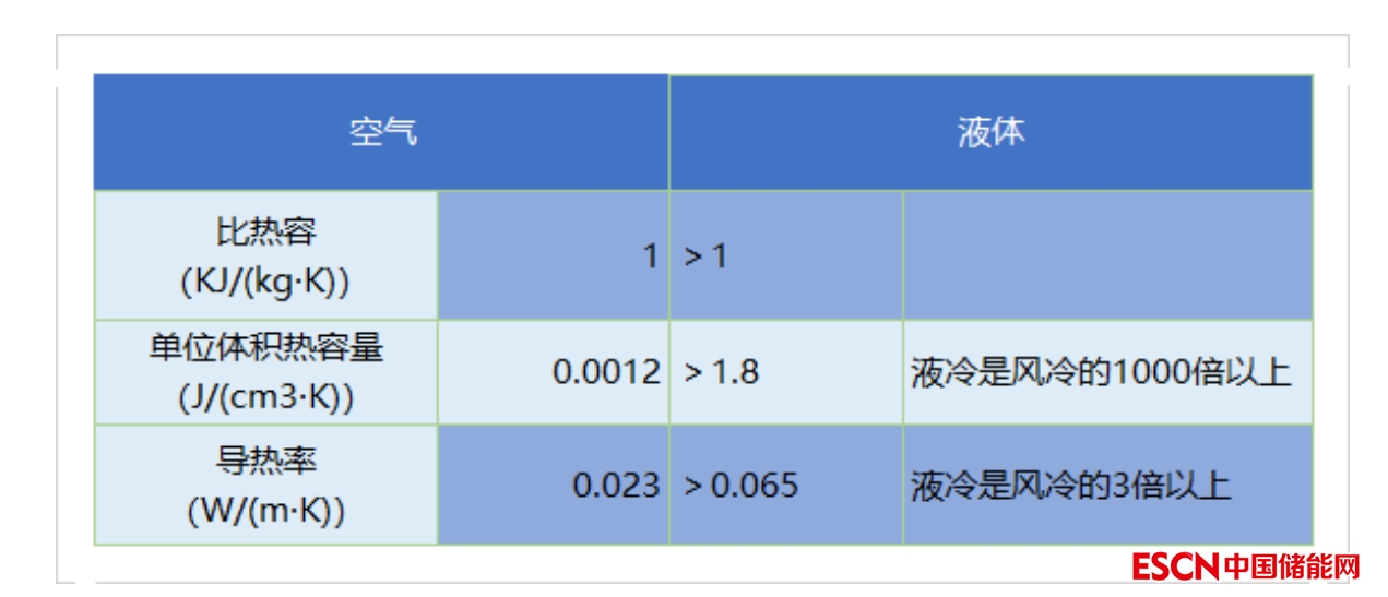 相較于風(fēng)冷以空氣為冷卻媒介,通過風(fēng)扇和壓縮制冷,液體的比熱容遠(yuǎn)高于空氣,單位體積熱容量是風(fēng)冷的1000倍以上,熱量傳導(dǎo)效率更高。