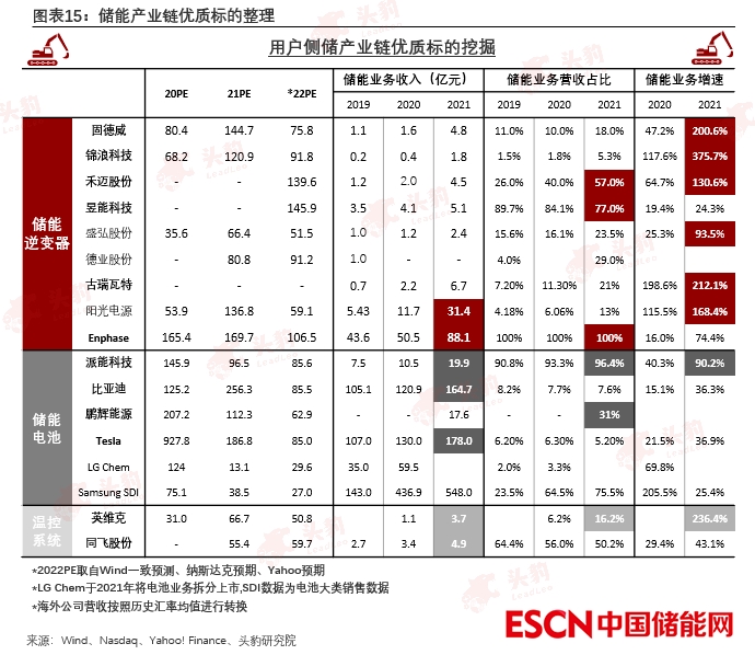 而縱觀整個(gè)戶儲(chǔ)市場(chǎng),產(chǎn)業(yè)鏈?zhǔn)铸嫶螅瑑?chǔ)能逆變器、儲(chǔ)能電池為產(chǎn)業(yè)鏈關(guān)注重點(diǎn),相關(guān)企業(yè)業(yè)績(jī)優(yōu)渥且仍處低估值區(qū)間。