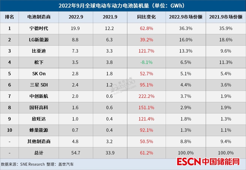 中國(guó)儲(chǔ)能網(wǎng)訊:日前,韓國(guó)市場(chǎng)研究機(jī)構(gòu)SNE Research公布的數(shù)據(jù)顯示,2022年9月,全球電動(dòng)汽車電池裝機(jī)量達(dá)54.7 GWh,同比增長(zhǎng)61.2%。盡管新冠疫情蔓延等不利因素導(dǎo)致電池原材料供需困難,但全球電動(dòng)汽車電池市場(chǎng)已經(jīng)連續(xù)27個(gè)月保持穩(wěn)定增長(zhǎng)。
