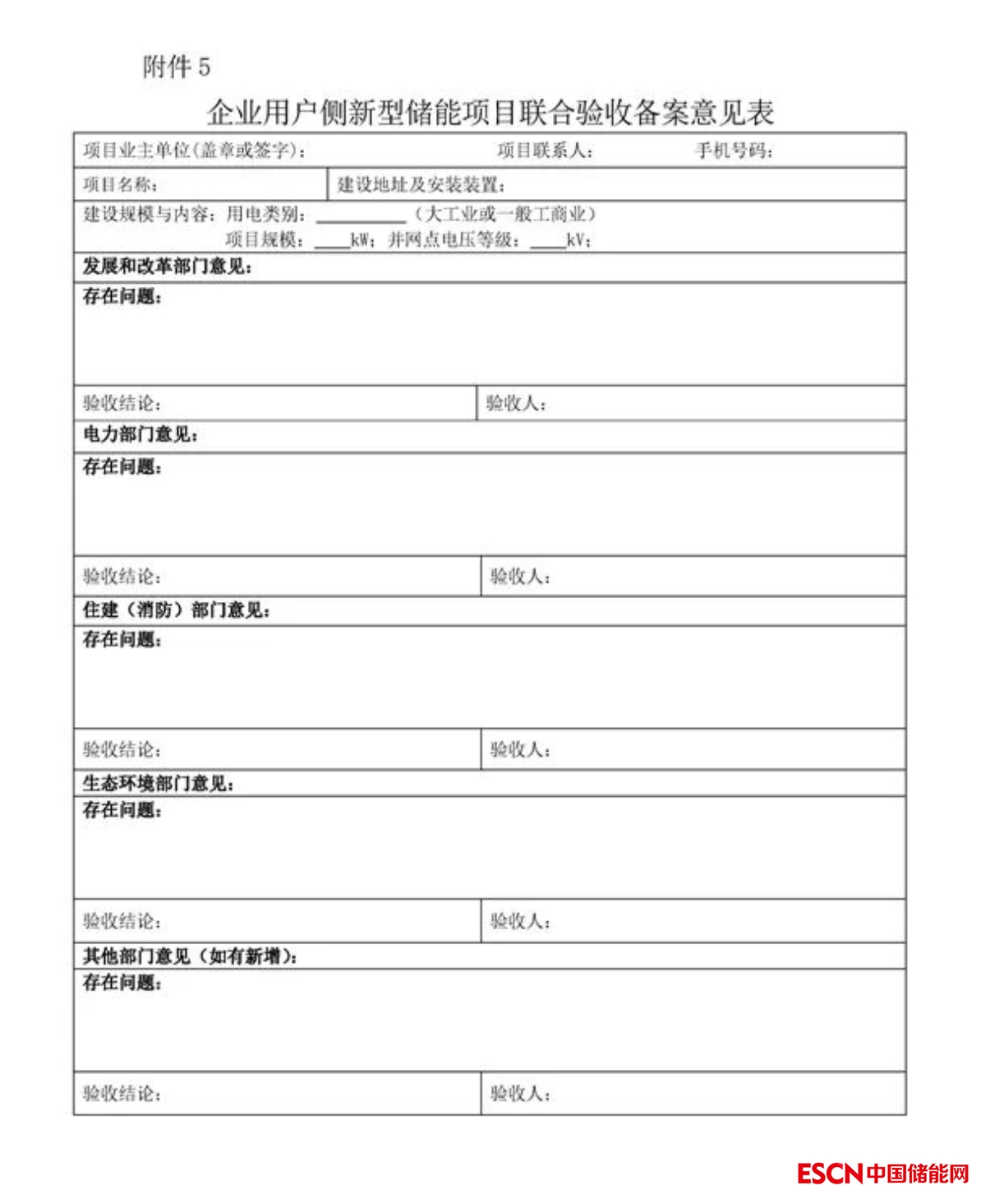 5.企業(yè)用戶側(cè)新型儲能項目聯(lián)合驗收備案意見表