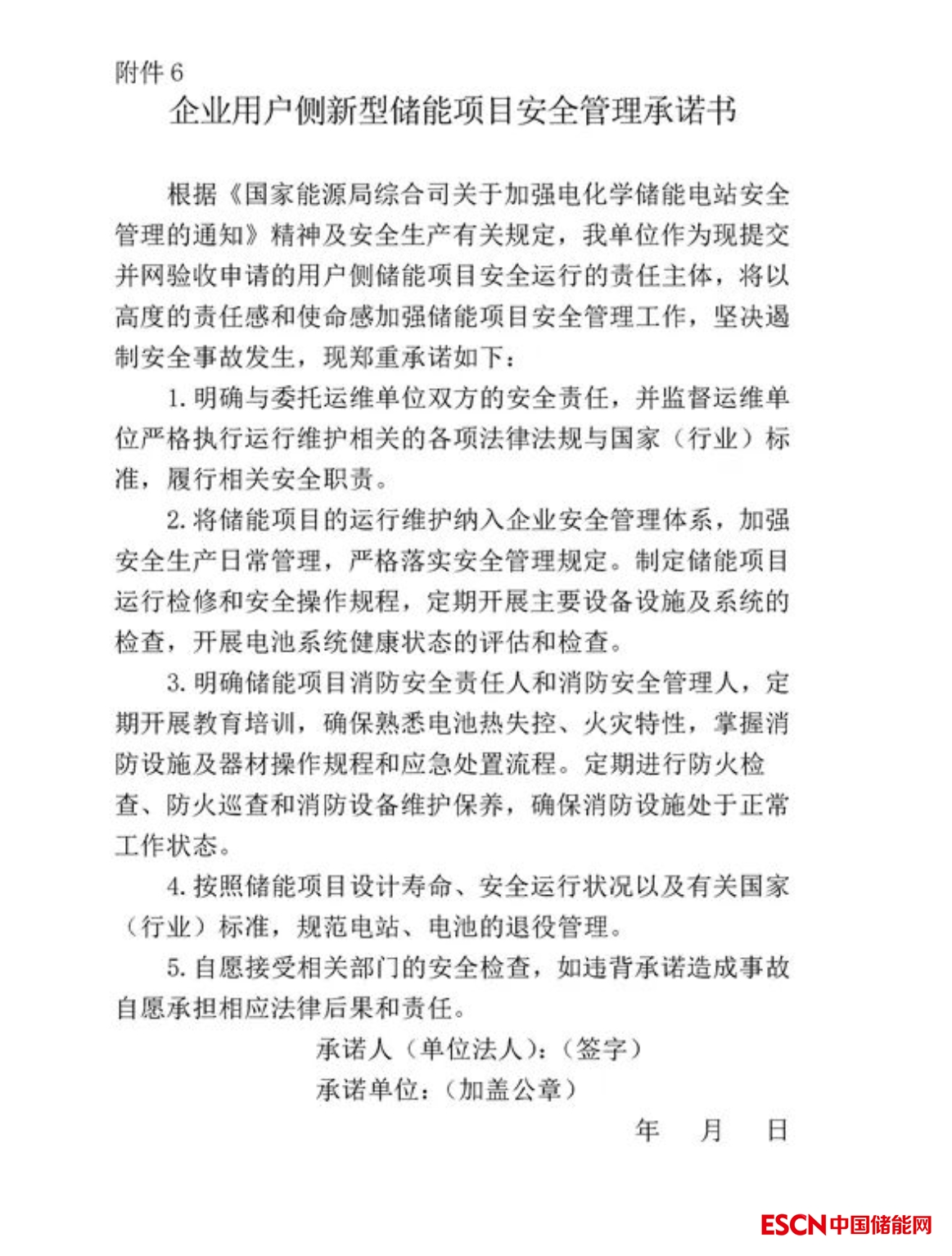 6.企業(yè)用戶側(cè)新型儲能項目安全管理承諾書