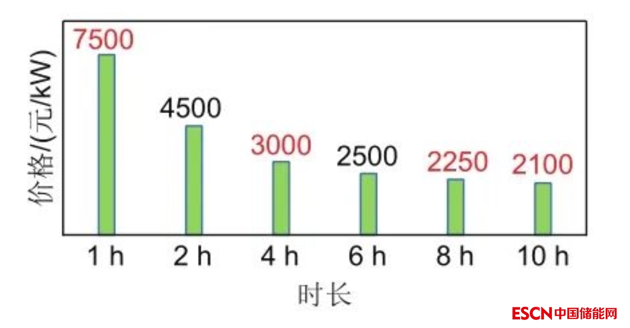 與不同時(shí)長(zhǎng)儲(chǔ)能系統(tǒng)的價(jià)格分析