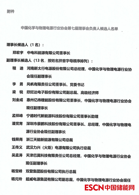附件:中國化學(xué)與物理電源行業(yè)協(xié)會第七屆理事會負(fù)責(zé)人候選人名單