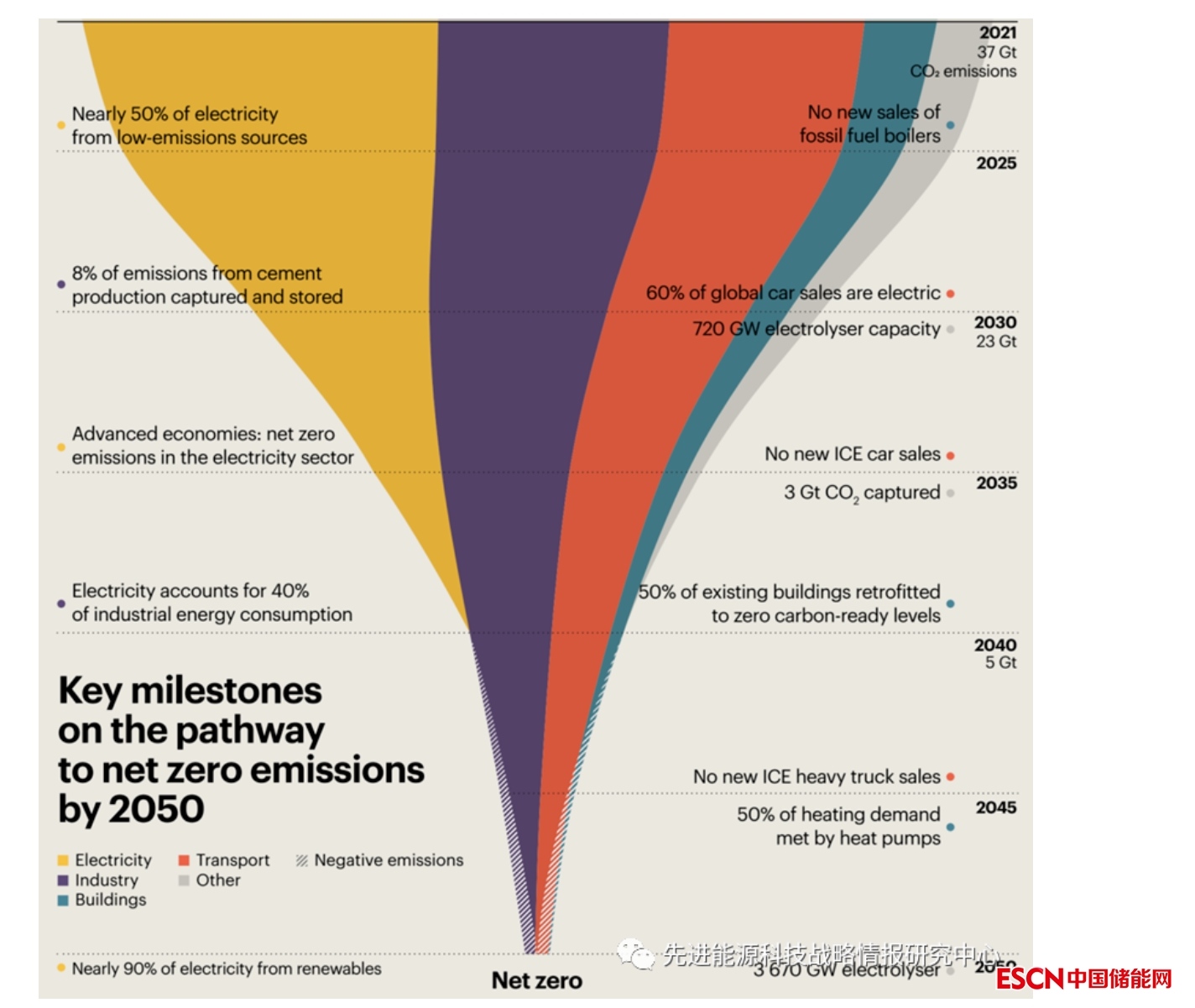 圖2 到2050年實(shí)現(xiàn)凈零排放的關(guān)鍵里程碑