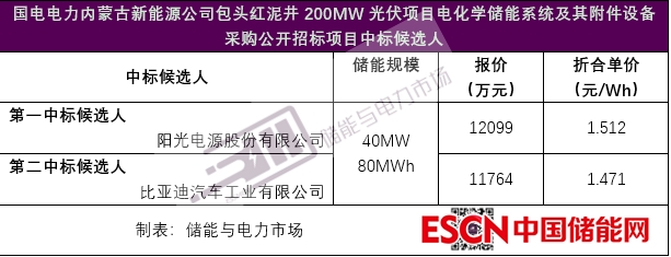 中國儲能網(wǎng)訊:11月17日,國電電力內(nèi)蒙古新能源公司包頭紅泥井200MW光伏項目電化學儲能系統(tǒng)及其附件設備采購公開招標項目中標候選人公示對外發(fā)布。陽光電源股份有限公司以總報價12099萬元,折合單價1.512元/Wh,成為第一中標候選人。