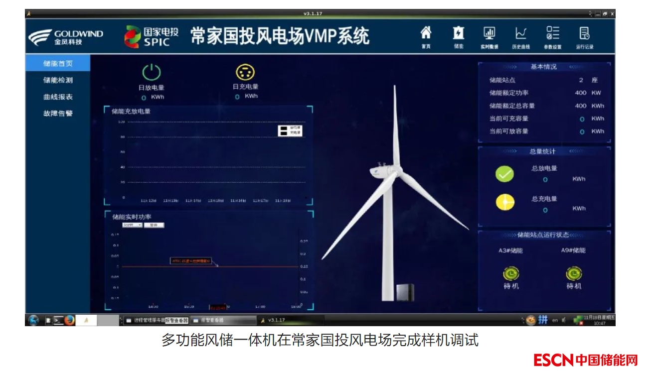 由于集中式儲能存在場地約束大、無法提升單機(jī)性能及調(diào)度權(quán)不受控等缺點(diǎn),風(fēng)儲一體機(jī)的研發(fā)對解決土地資源緊缺、提升風(fēng)機(jī)儲能協(xié)同能力、發(fā)電企業(yè)自主靈活調(diào)度提升資產(chǎn)收益率顯得至關(guān)重要。雖然目前國內(nèi)有少數(shù)風(fēng)儲一體機(jī)示范,但均只具備單一功能。此次上海能科牽頭研發(fā)的風(fēng)儲一體機(jī)集七大功能于一身,包括1.提高短期風(fēng)功率預(yù)測準(zhǔn)確率,降低雙細(xì)則考核費(fèi)用;2.減少棄風(fēng),提升單機(jī)發(fā)電量;3.通過峰谷電價(jià)差套利以及偏差考核控制,提升風(fēng)電場站電力現(xiàn)貨收益;4.通過風(fēng)儲協(xié)同參與電網(wǎng)一次調(diào)頻,降低風(fēng)機(jī)載荷壓力;5.具備風(fēng)機(jī)黑啟動或孤島運(yùn)行功能,提升風(fēng)機(jī)運(yùn)行可靠性和靈活性;6.具備單臺風(fēng)儲一體機(jī)虛擬同步(VSG)功能,大幅提升風(fēng)機(jī)電網(wǎng)友好性;7.通過仿真測試了多風(fēng)儲一體機(jī)環(huán)境下的場站級VSG功能,可有效保障電網(wǎng)頻率與電壓穩(wěn)定。