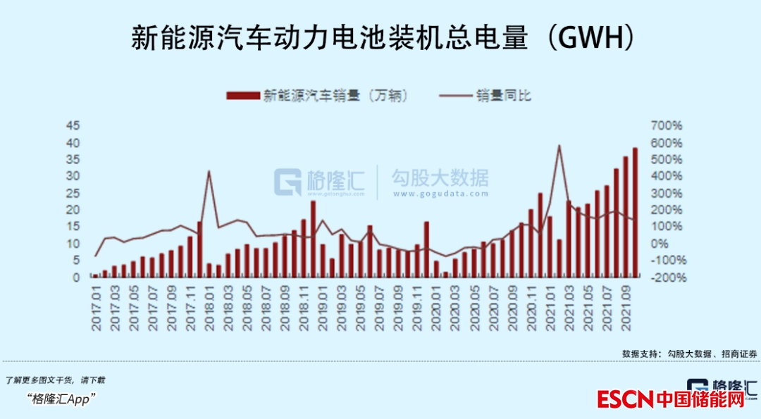 動力電池需求最旺盛的階段,國內(nèi)新能源車滲透率迅速從低于10%快速攀升至20%以上,僅僅只花了兩年多的時間。今年10月份單月新能源車滲透率已經(jīng)突破30%,全年銷量也有望突破650萬輛。