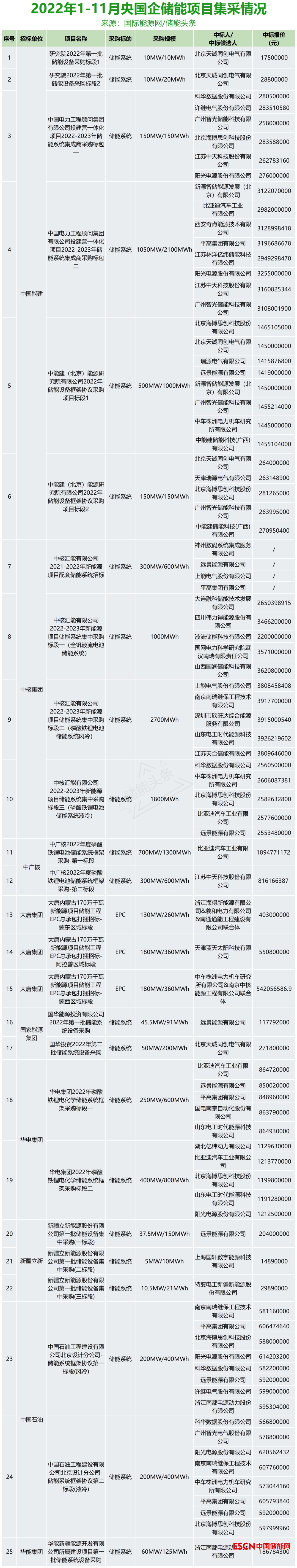 而在風(fēng)光配置儲(chǔ)能的要求和獨(dú)立式儲(chǔ)能項(xiàng)目開發(fā)熱情的驅(qū)使下,央企正成為儲(chǔ)能的最大買方和用戶群。巨大的儲(chǔ)能需求也趨勢(shì)央企改變儲(chǔ)能系統(tǒng)的采購方式,由此前的按項(xiàng)目采購逐漸轉(zhuǎn)換為在風(fēng)電光伏領(lǐng)域已經(jīng)通用的集采模式。