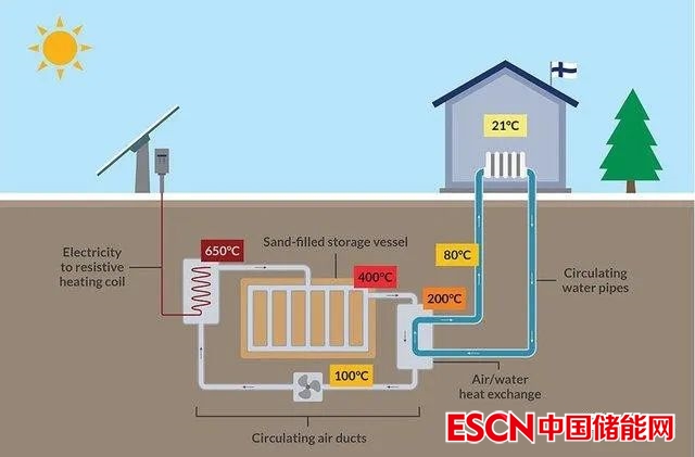 中國儲能網訊:沙子電池(Sand Battery)的原理是利用沙子的儲熱能力,將風能或太陽能產生的熱能蓄集起來,加熱至此設備,該設備通過熱交換器讓熱氣在沙子里面循環(huán),能夠把沙子以500℃的高溫保持數(shù)月。