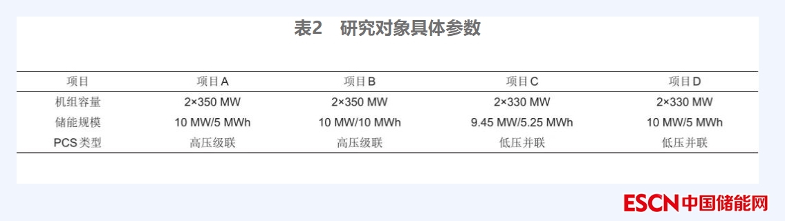 綜上所述,在火儲聯(lián)合調(diào)頻項目中,儲能系統(tǒng)的功率控制、充放電響應(yīng)時間以及能量轉(zhuǎn)換效率性能是衡量火儲聯(lián)調(diào)項目儲能系統(tǒng)集成效果的重要技術(shù)性指標(biāo)??紤]到試驗樣本的一致性,以廣東省內(nèi)火電機(jī)組容量相近、儲能規(guī)模類似的4個火儲聯(lián)合調(diào)頻項目作為研究對象(項目具體參數(shù)見表2),通過設(shè)計試驗方案對火儲聯(lián)合調(diào)頻項目中低壓并聯(lián)和高壓級聯(lián)的儲能系統(tǒng)進(jìn)行有功和無功功率控制、充放電響應(yīng)性能以及能量轉(zhuǎn)換效率對比分析,研究不同拓?fù)浣Y(jié)構(gòu)的儲能系統(tǒng)并網(wǎng)性能。