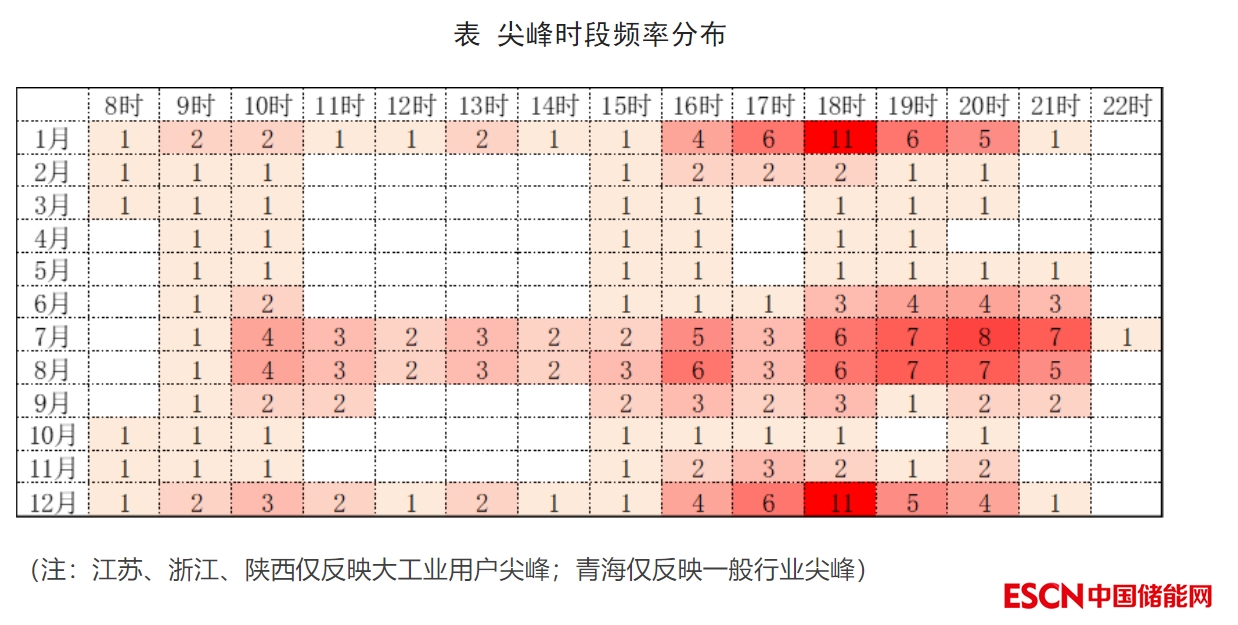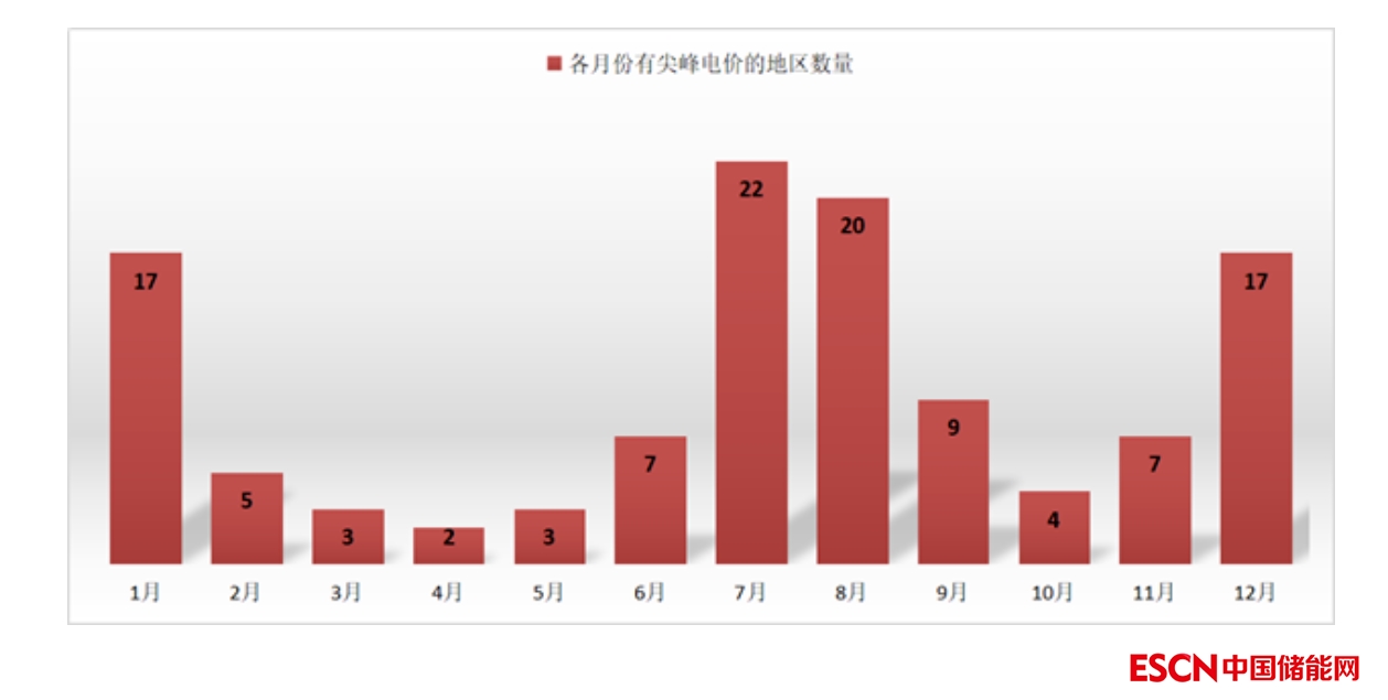 綜合各地分月度、分小時尖峰電價信息發(fā)現(xiàn),7-8月的16:00-22:00,以及12-1月的17:00-21:00是設(shè)置尖峰時段相對集中的時段,其中又以1月和12月的18:00-19:00最為突出,22個設(shè)置了尖峰時段的地區(qū)中有一半都在兩個小時劃分尖峰。