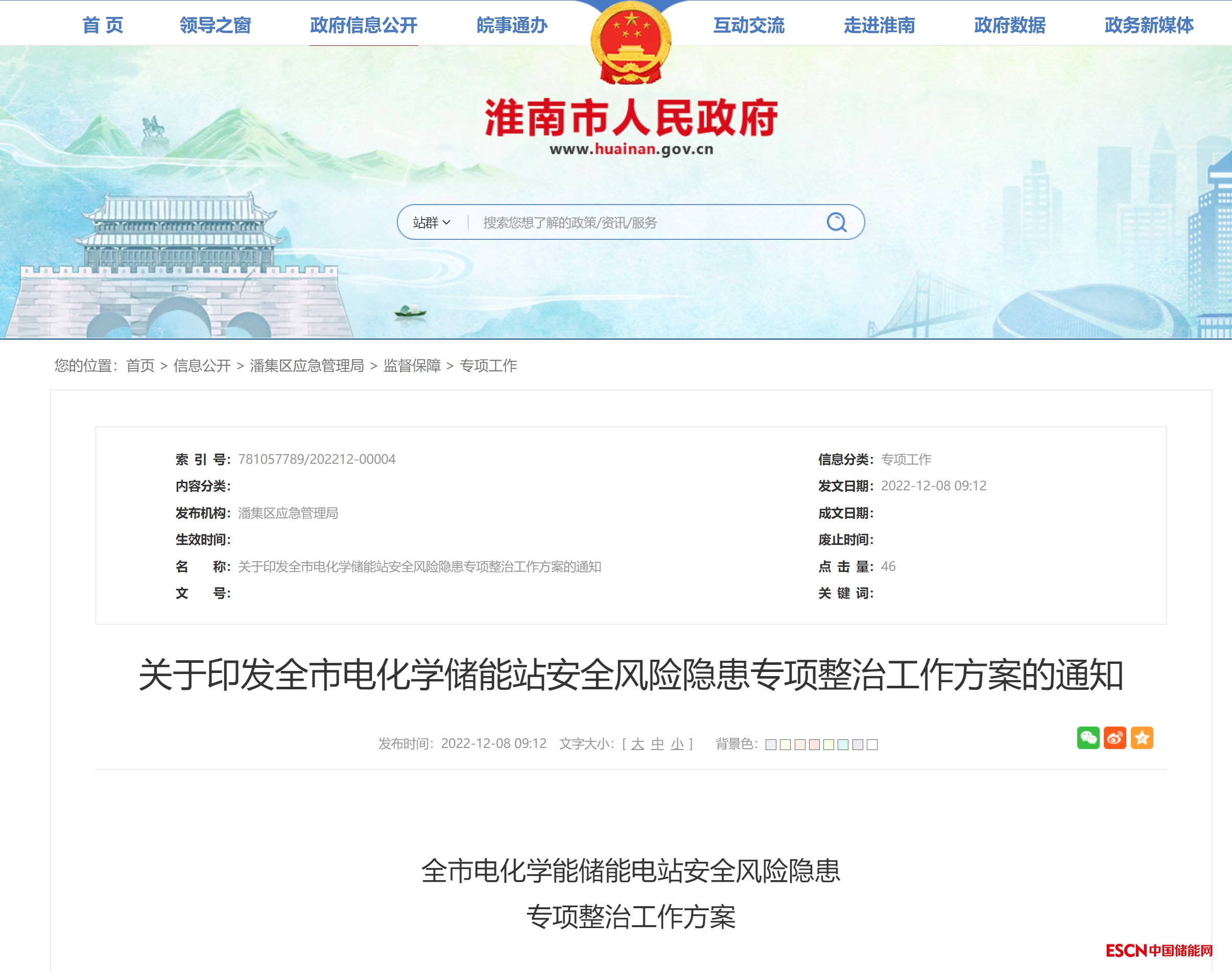 全市電化學(xué)能儲能電站安全風(fēng)險隱患專項整治工作方案