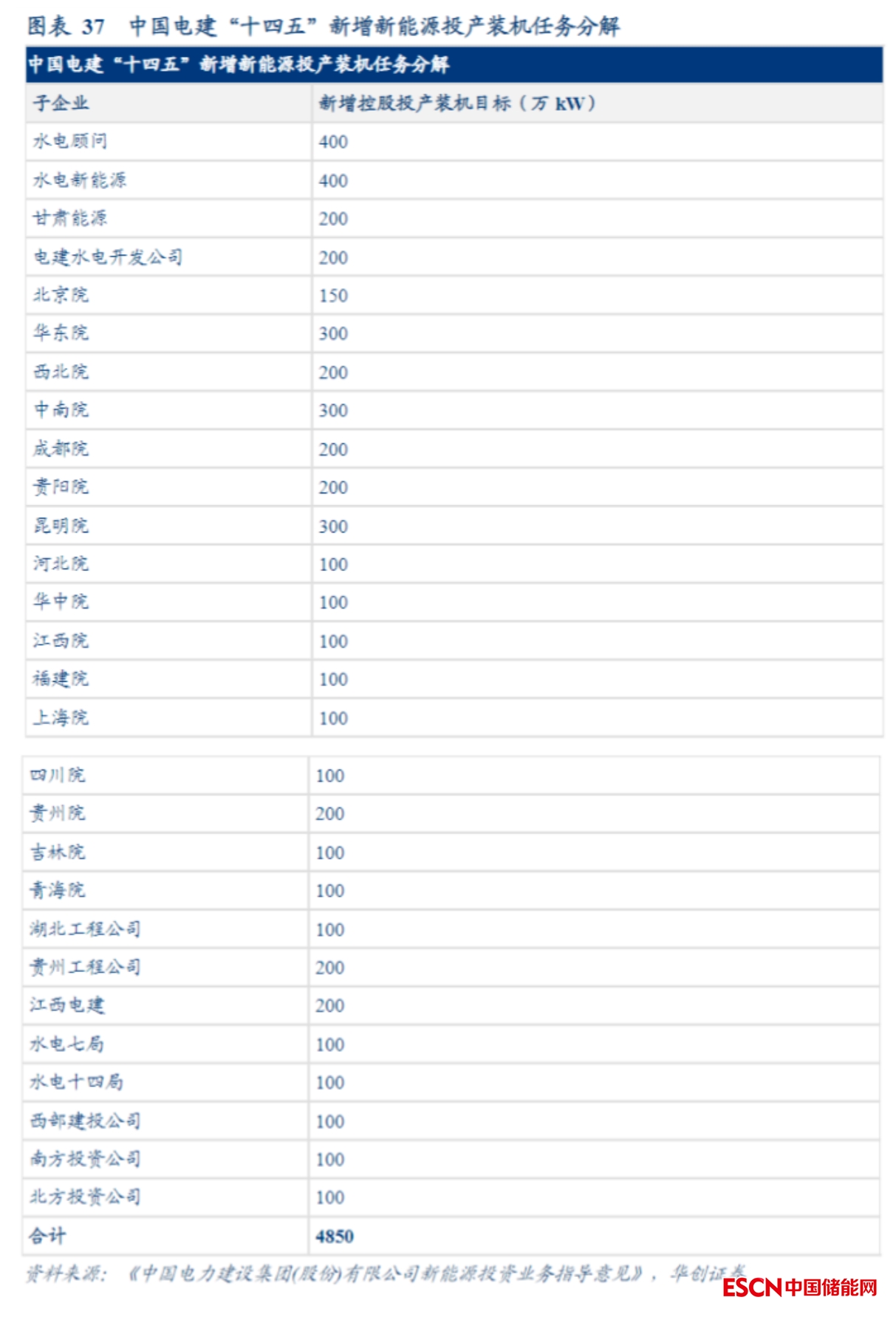 2021年初,根據中國電建印發(fā)《中國電力建設集團(股份)有限公司新能源投資業(yè)務指導意見》,公司預計將于“十四五”期間在境內外新增控股投產風光電裝機容量3000萬千瓦。根據文件對下屬28個企業(yè)分解的新能源投產裝機任務來看,合計的新增規(guī)模將達4850萬千瓦。這是中國電建首次明確大力發(fā)展新能源投資運營業(yè)務,進一步放寬集團下屬企業(yè)新能源項目投資主體范圍。