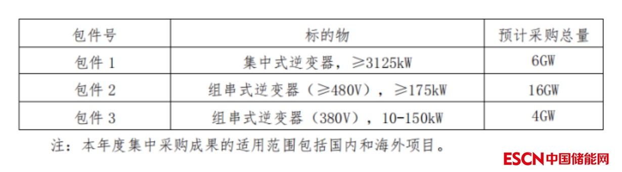 逆變器:分為3個包件進行投標,其中包括6GW集中式逆變器,≥3125kW;16GW組串式逆變器(≥480V),≥175kW;4GW組串式逆變器(380V),10-150kW。潛在投標人可以對某一包件或全部包件進行投標,各包件組成詳見下表: