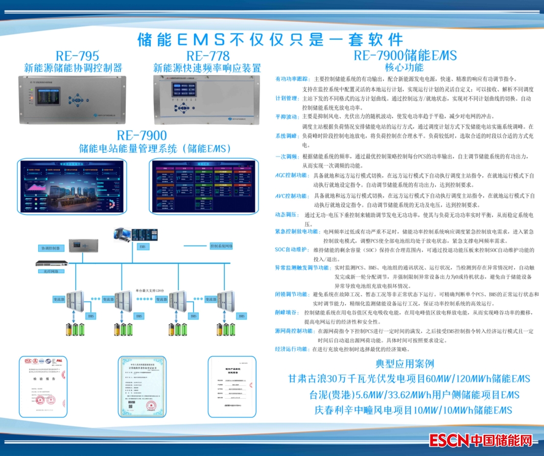 儲(chǔ)能電站能量管理系統(tǒng)(儲(chǔ)能EMS):南京中匯電氣儲(chǔ)能電站能量管理系統(tǒng)(儲(chǔ)能EMS):一體化架構(gòu)設(shè)計(jì)、電網(wǎng)適應(yīng)性好、控制手段多樣、控制方式靈活;兼具兼具有功功率跟蹤、計(jì)劃管理、平抑波動(dòng)、系統(tǒng)調(diào)峰、一次調(diào)頻、AGC控制功能、AVC控制功能、動(dòng)態(tài)調(diào)壓、經(jīng)濟(jì)控制放電功能、SOC自動(dòng)維護(hù)、異常監(jiān)測(cè)觸發(fā)調(diào)節(jié)功能、閉鎖調(diào)節(jié)功能、削峰填谷、源網(wǎng)荷控制功能、經(jīng)濟(jì)運(yùn)行功能、GOOSE控制等功能,不僅具有單套軟件系統(tǒng),同時(shí)還完整配備、一次調(diào)頻裝置、功率控制裝置以及各種保護(hù)測(cè)控裝置等,可提供多種解決方案。