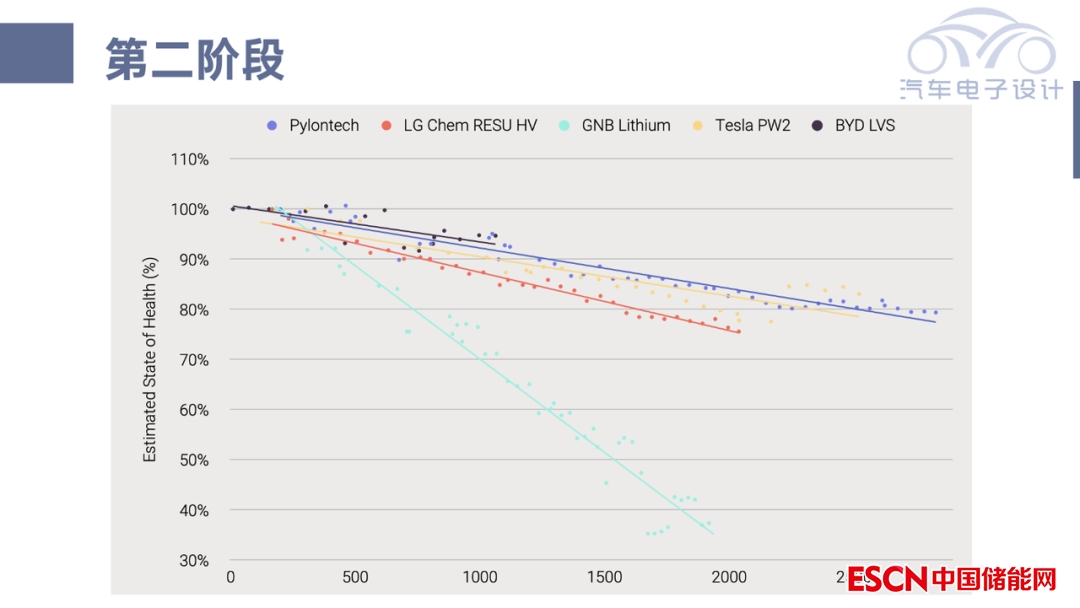 我是這么理解,實際上儲能系統和純電動汽車一樣,電池經過EOL測試以后,在早期發(fā)生故障的可能性并不高,但是很多的問題都是偏電子化的。而目前電池的SOH,整體的結果都是不錯的。