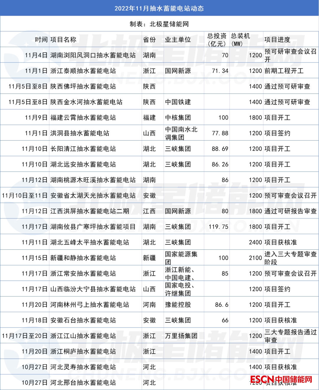 11月抽水蓄能項(xiàng)目整理如下: