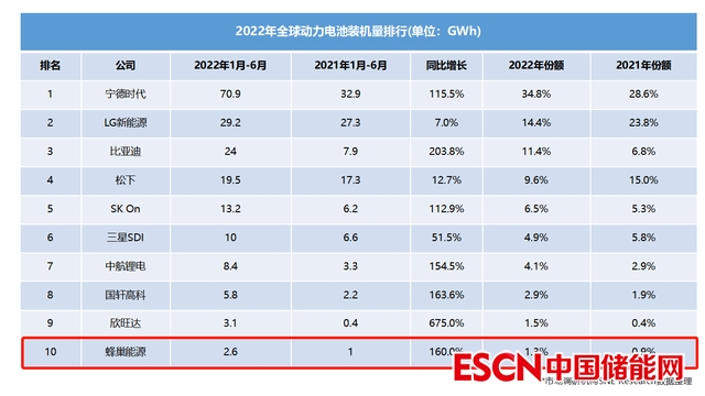 近年來,蜂巢能源如同一匹“黑馬”,根據(jù)中國汽車動力電池產(chǎn)業(yè)創(chuàng)新聯(lián)盟統(tǒng)計,蜂巢能源2021年度及2022年1-6月動力電池裝車量國內(nèi)排名第六。其中,2022年上半年蜂巢能源累計裝機(jī)量達(dá)到2.6GWh,同比增長160%。
