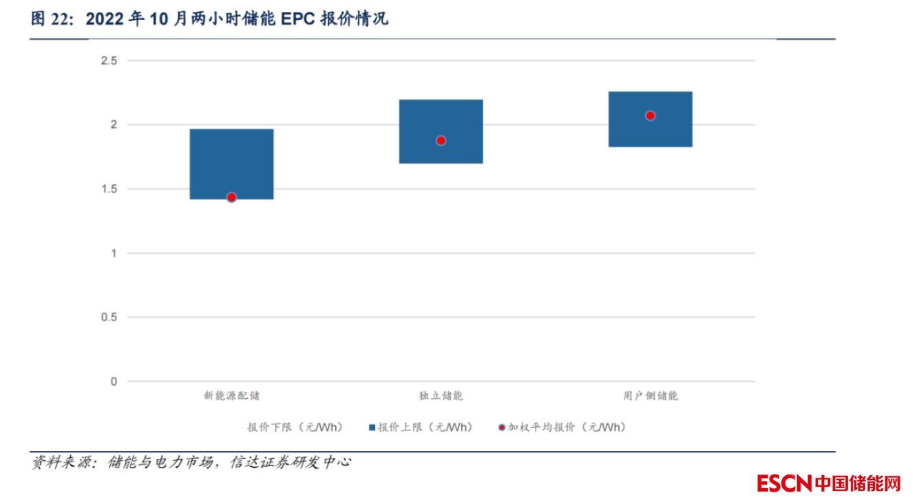 經濟性驅動風光配儲項目壓低成本,儲能性能大打折扣。對于新能源項目投資方,經濟性最大化是將儲能項目成本降至最低,從儲能與電力市場跟蹤的 2022年10月份的儲能項目來看,新能源配儲的中標價格相比其他的企業(yè)較低,新能源配儲項目加權平均報價為1.43元/Wh,而獨立儲能和用戶側儲能加權平均報價分別為1.88元/Wh和2.07元/Wh。新能源配儲控制成本,采購的設備、電芯相較其他場景儲能更差,因此儲能性能大打折扣,根據(jù)《新能源配儲能運行情況調研報告》數(shù)據(jù),在高成本壓力下,部分項目選擇了性能較差、投資成本較低的儲能產品,增加了安全隱患。2022年1-8月,全國電化學儲能項目非計劃停機達到329次。
