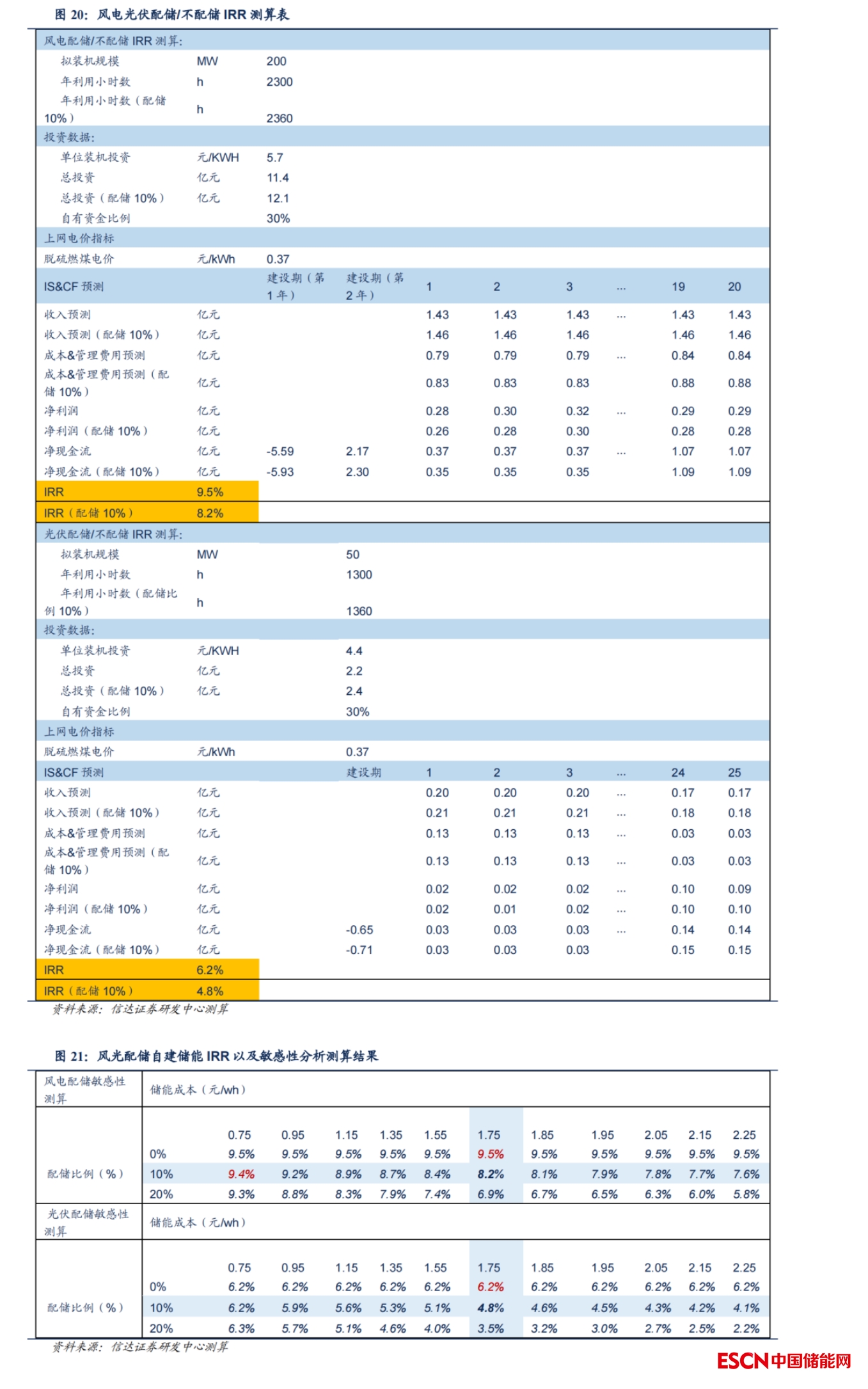 2、調頻儲能性能要求較高,儲能單位投資為2.3元/Wh,自有資金比例為30%。