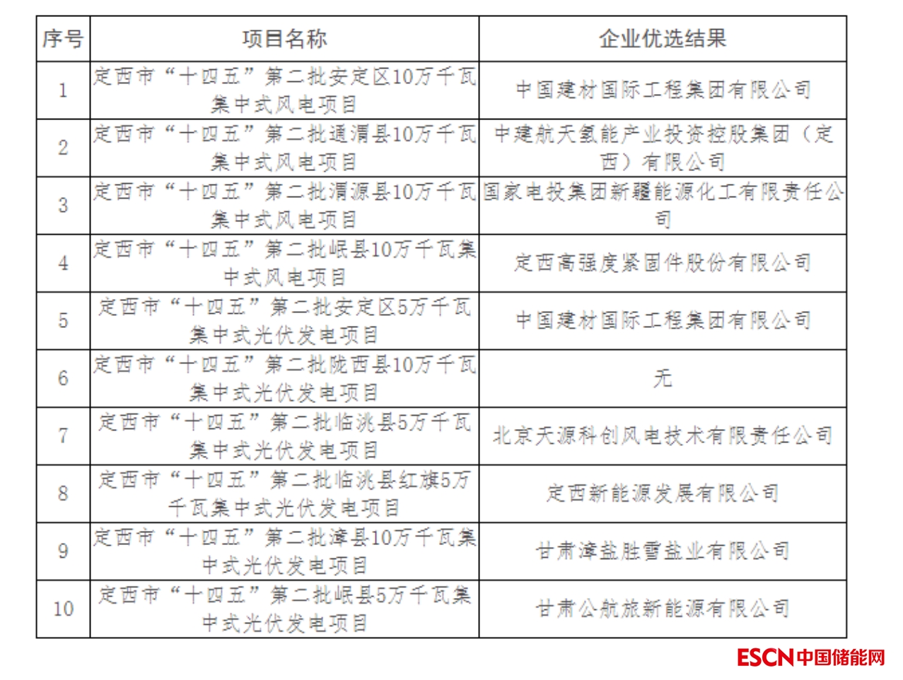 關(guān)于定西市“十四五”第二批風光電項目競爭性配置結(jié)果的公示