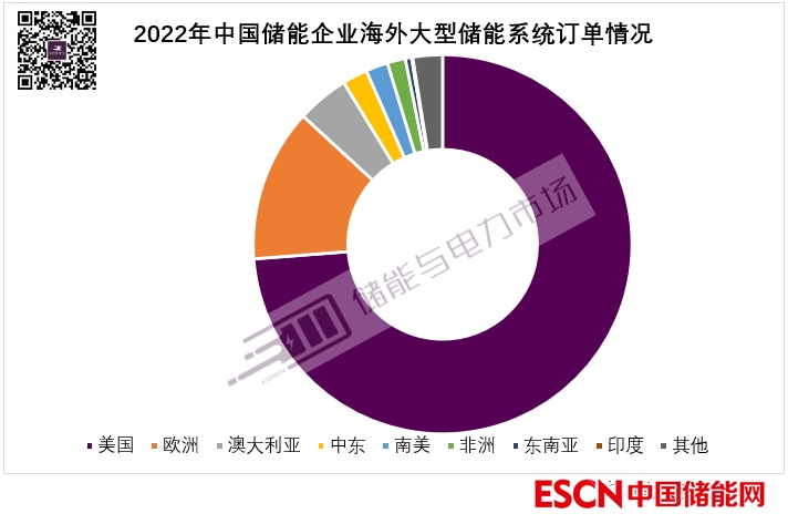 2022年我們同樣看到比亞迪、陽(yáng)光電源、天合儲(chǔ)能、科華數(shù)能、阿特斯等國(guó)內(nèi)一線儲(chǔ)能系統(tǒng)集成商發(fā)力海外市場(chǎng),憑借其在海外光伏等領(lǐng)域建立的銷(xiāo)售渠道,推廣儲(chǔ)能產(chǎn)品。儲(chǔ)能項(xiàng)目遍布美國(guó)、歐洲、澳大利亞、沙特、智利、印度等全球各地。