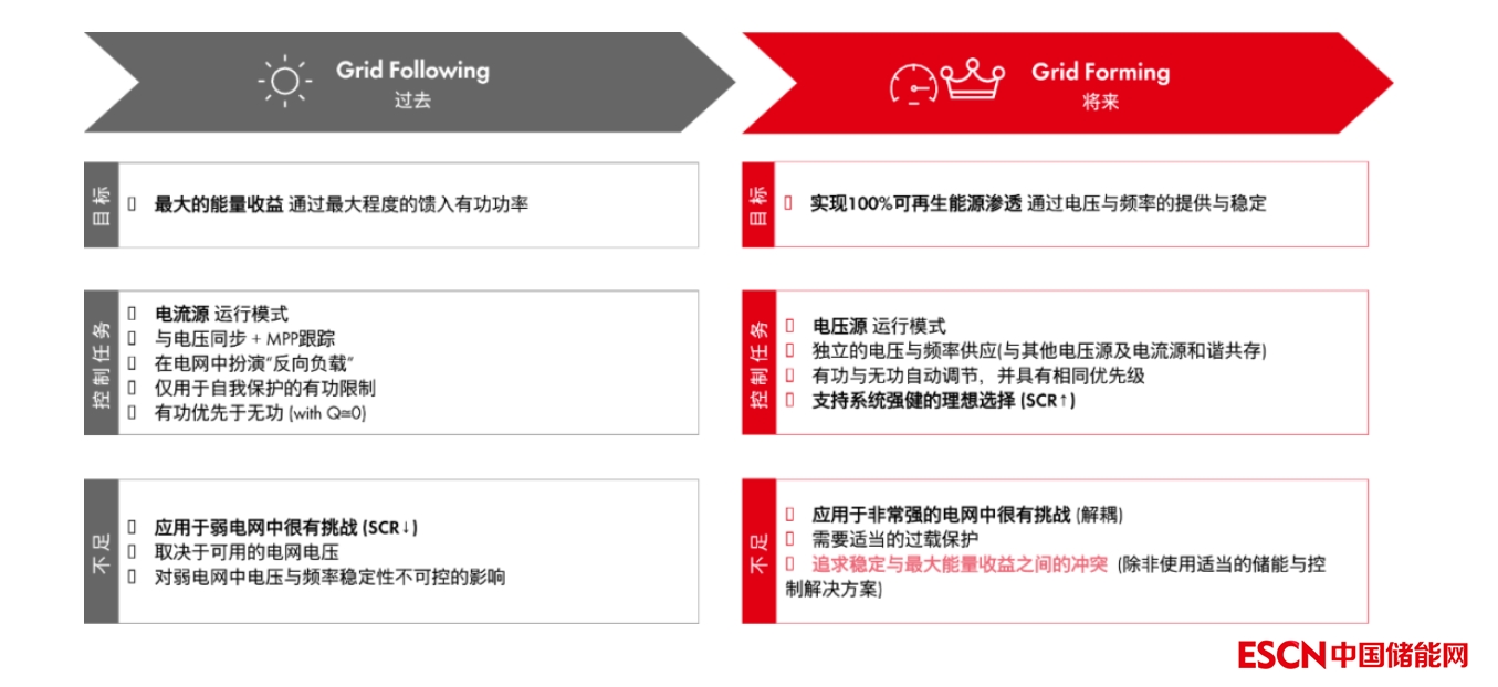此時就需要Grid Forming構(gòu)網(wǎng)型儲能逆變器系統(tǒng)為高比例可再生能源電力系統(tǒng)注入穩(wěn)定的機械慣性。