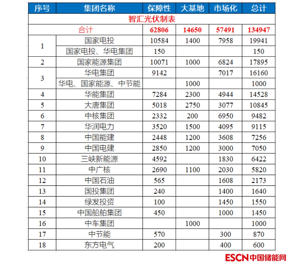 國家電投、國家能源集團、華電集團,均獲得超過15GW的項目;