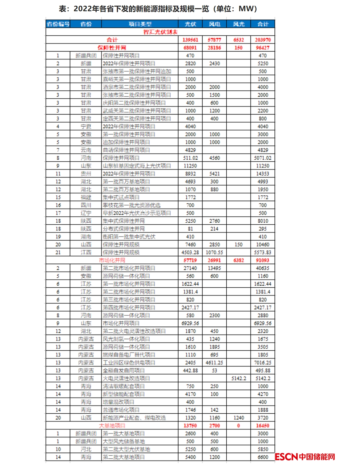 中國儲能網(wǎng)訊:隨著2022年底的臨近,各省2022年的新能源項目分配工作也基本完成。根據(jù)公開消息,在2022年,共21個省完成了新能源項目分配工作,總規(guī)模為203.97GW,包括保障性規(guī)模96.427GW、市場化規(guī)模91.094GW、大基地項目16.45GW。具體情況如下: