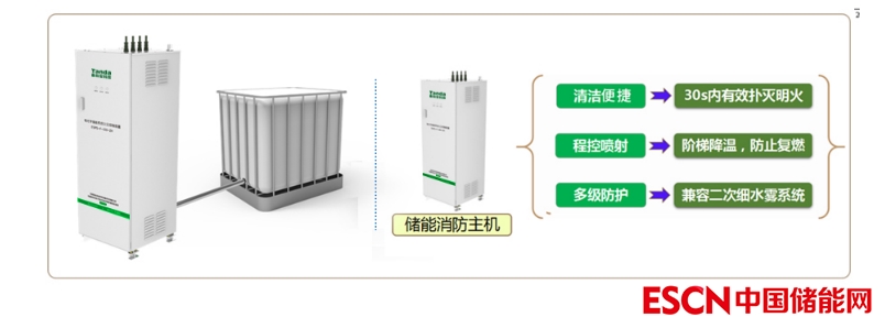 電化學(xué)儲能系統(tǒng)火災(zāi)抑制方案以“早發(fā)現(xiàn)、早處置”為原則,對儲能艙內(nèi)鋰電池?zé)崾Э爻跫夒A段進行超前探測預(yù)警,并精準(zhǔn)多次點噴抑制處理艙內(nèi)火災(zāi),將火災(zāi)撲滅在萌芽階段。