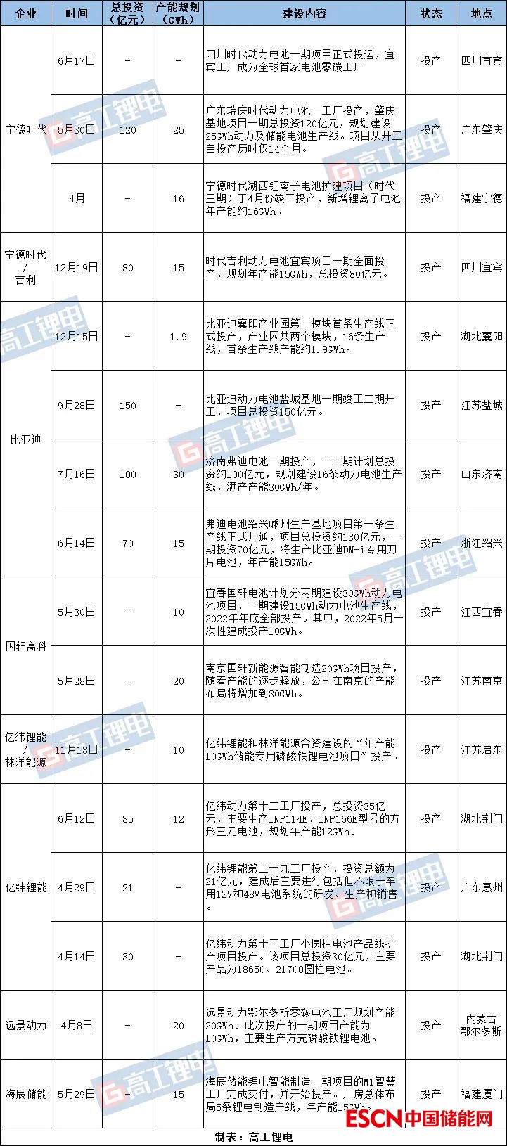 從統(tǒng)計(jì)數(shù)據(jù)來(lái)看,在開(kāi)工的44個(gè)項(xiàng)目中,總投資在100億以上的23個(gè)。與此前相比,今年動(dòng)力電池企業(yè)同時(shí)啟動(dòng)多個(gè)基地同步建設(shè)。其中,中創(chuàng)新航眉山、武漢基地,蜂巢能源上饒、鹽城基地,力神無(wú)錫、滁州、天津基地,比亞迪長(zhǎng)春、南寧、襄陽(yáng)基地等均在短期內(nèi)陸續(xù)開(kāi)工。