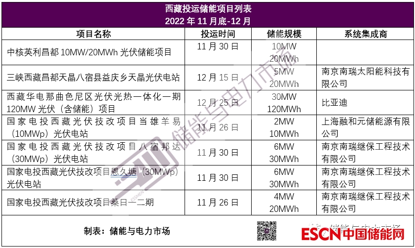 西藏12月投運了多個光伏配儲項目,項目簡要信息如下表所示。