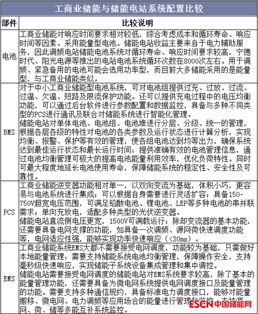 圖:工商業(yè)儲(chǔ)能與儲(chǔ)能電站系統(tǒng)配置比較