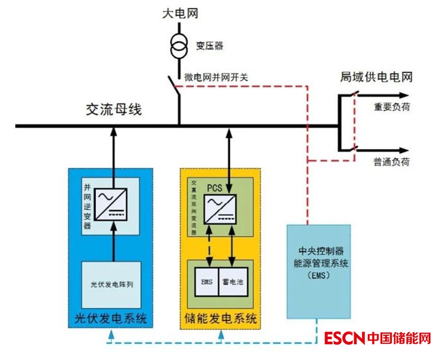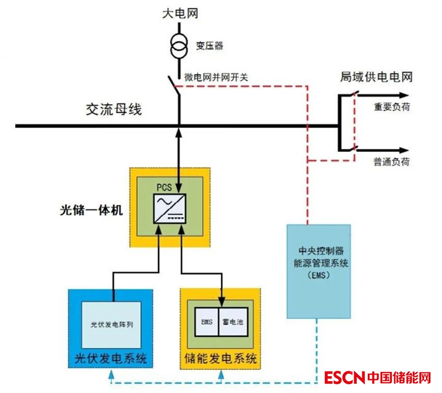 圖:采用PCS的交流耦合儲(chǔ)能的工商業(yè)儲(chǔ)能系統(tǒng)