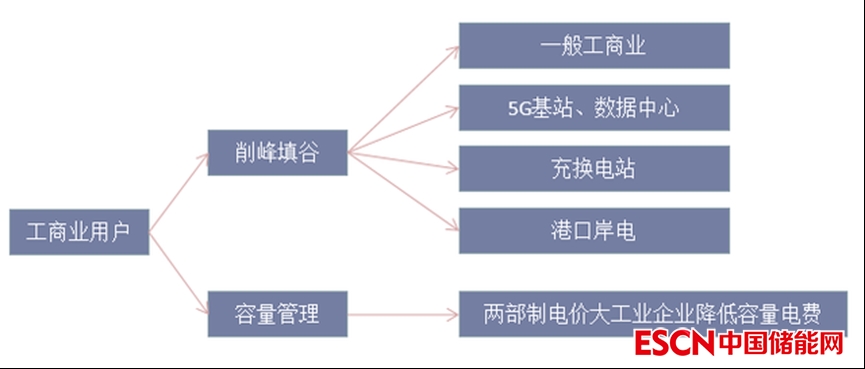 對(duì)于商業(yè)樓宇、醫(yī)院、學(xué)校等不適用于安裝大規(guī)模光伏自發(fā)電的場(chǎng)景,則通過(guò)安裝儲(chǔ)能系統(tǒng)達(dá)到削峰填谷、降低容量電價(jià)的目的。