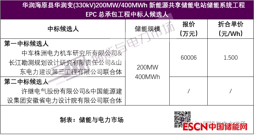 由中車株洲電力機(jī)車研究所有限公司牽頭,長江勘測(cè)規(guī)劃設(shè)計(jì)研究有限責(zé)任公司和山東電力建設(shè)第三工程有限公司共同組成的聯(lián)合體成為第一中標(biāo)候選人,總報(bào)價(jià)60006萬元,折合單價(jià)1.5元/Wh。